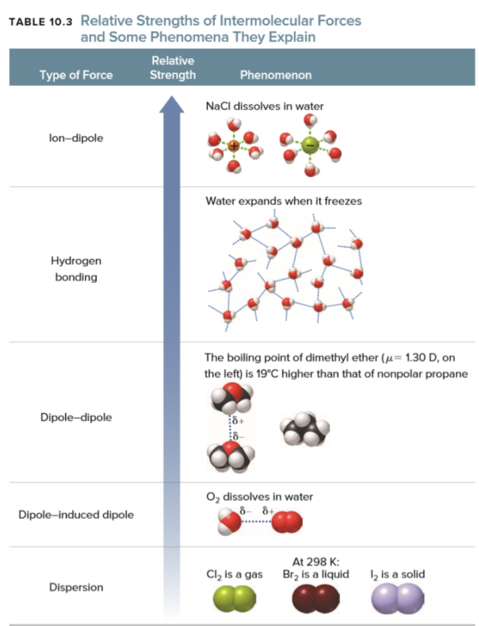rank from strongest to weakest : dipole dipole, dispersion , ion-dipole , h-bonding , dipole-induced dipole