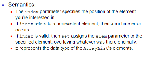 ArrayList objects don’t use square brackets like standard arrays when accessing and updating an element, what do they use instead?