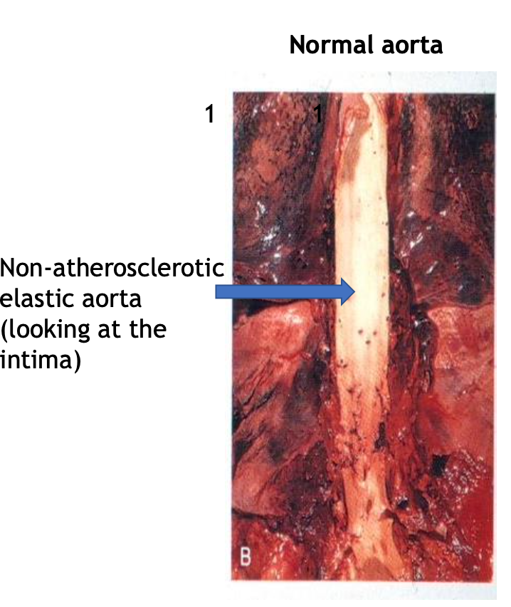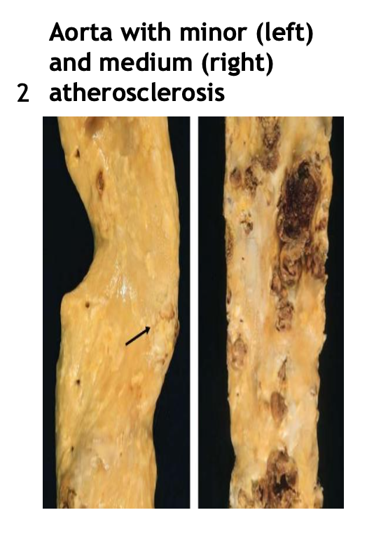 There is loss of elastic fibers (less elastic aorta) and there is mucoid depositions (glycosaminoglycans) causing a weakening of the media