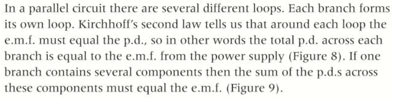 What is the law of potential difference relating to branches in a parallel circuit.