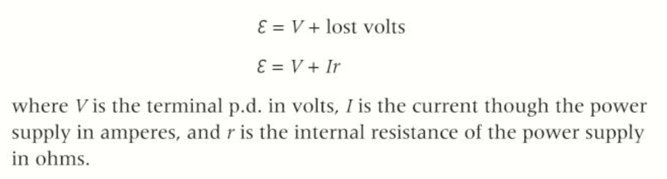 State the equation of electromotive force, including “lost volts”.