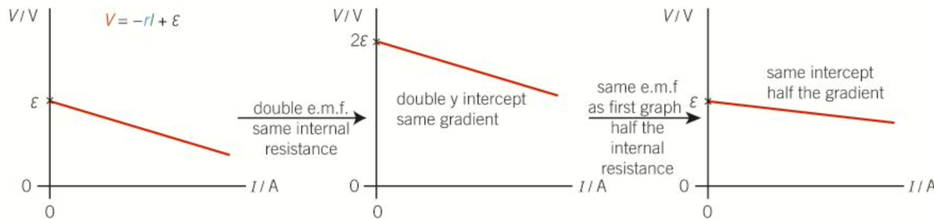 Gradient = -r (internal resistance)