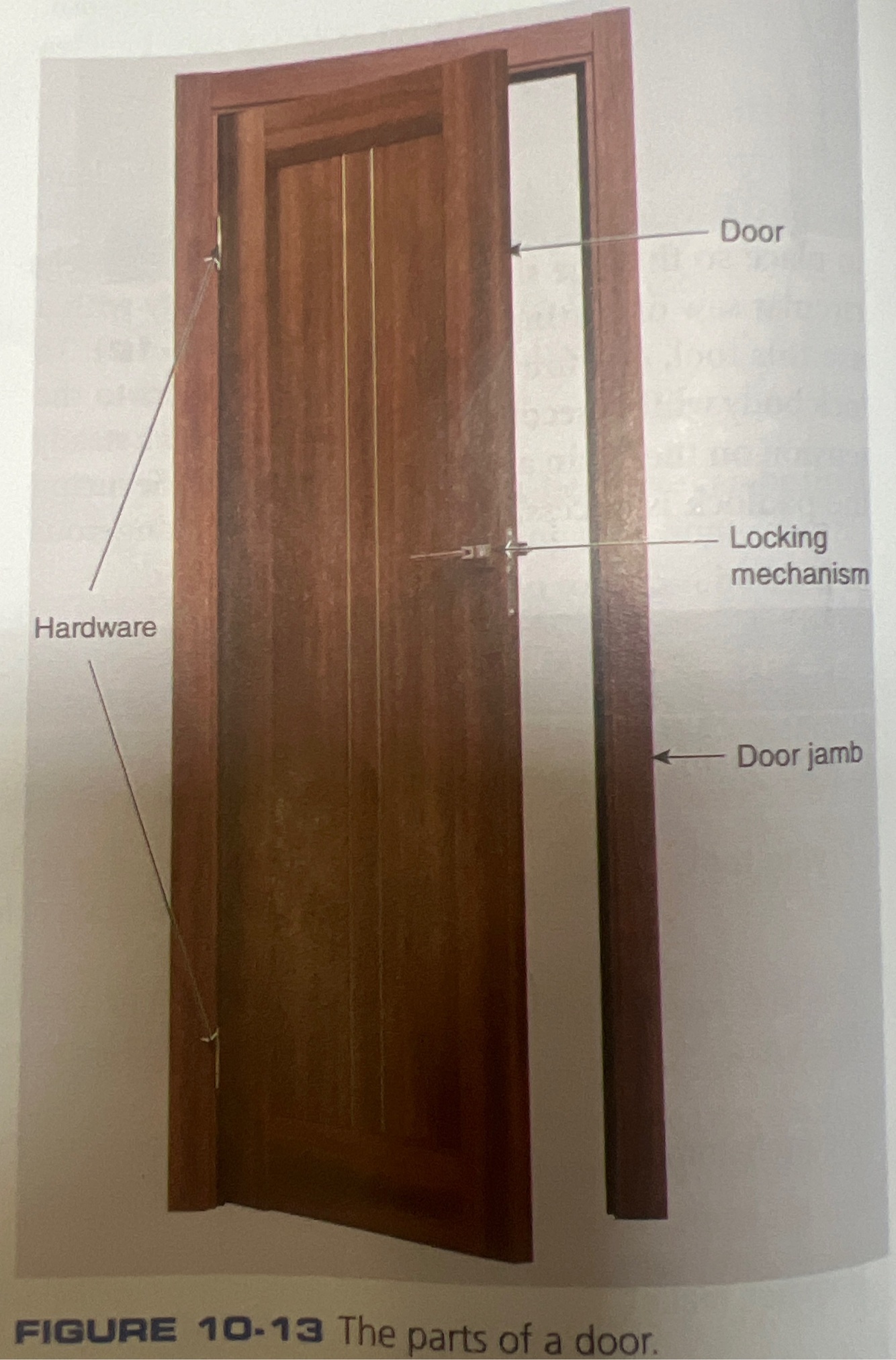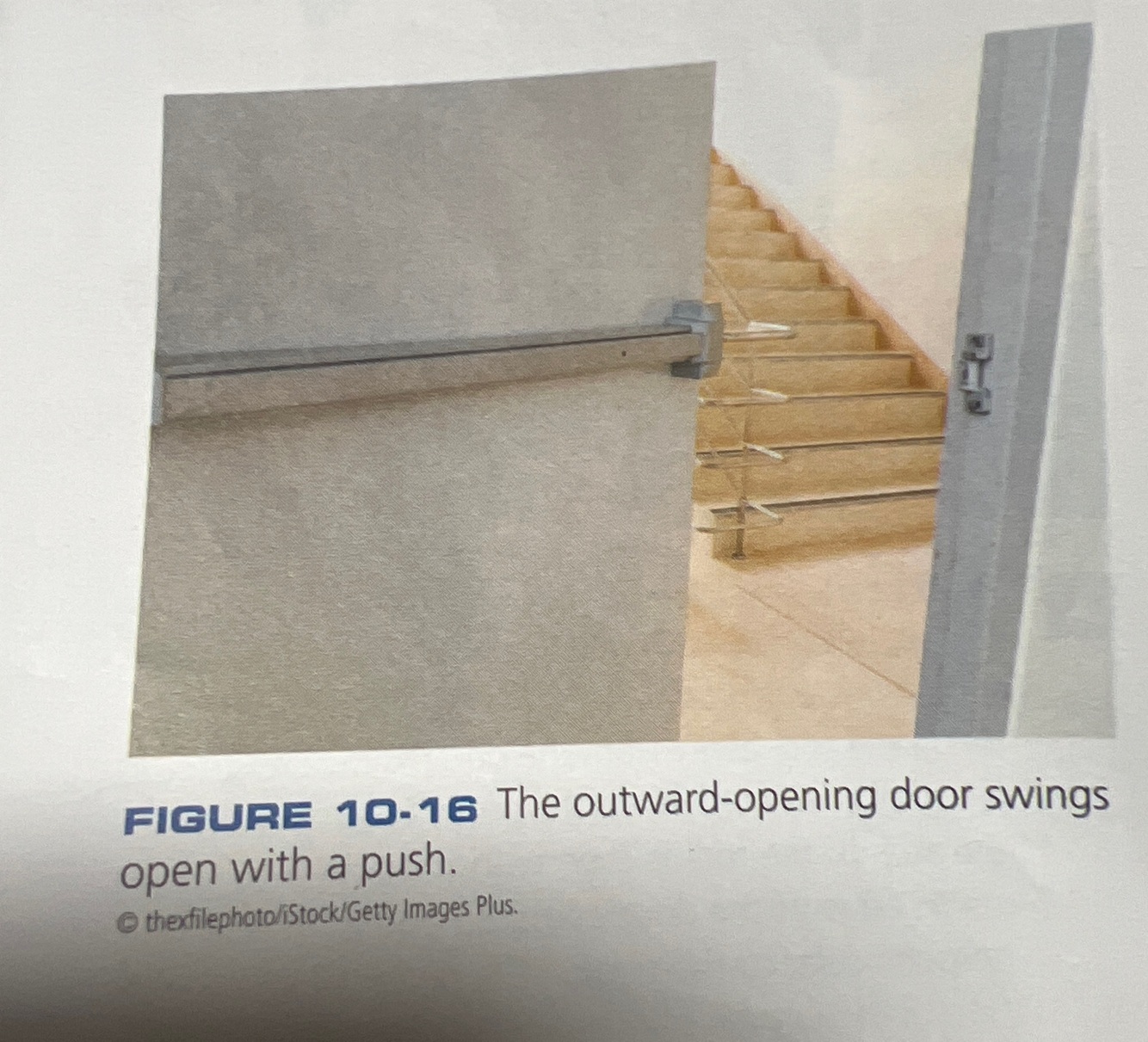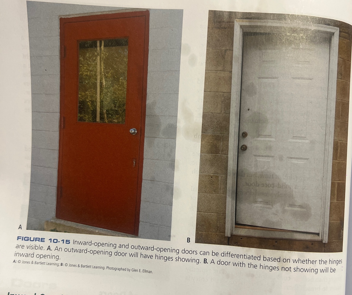 Inward and outward doors can be differentiated based on whether the hinges are visible (fig.10-15). If you can see the hardware, the door will swing inward or outward?