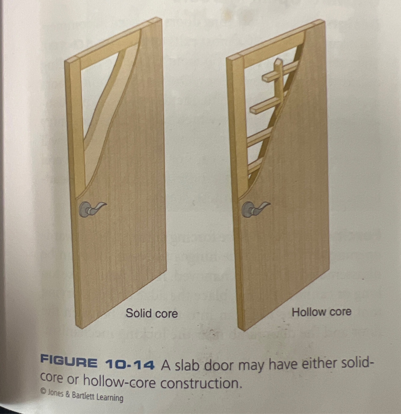 Used in commercial occupancies and for most exits (Fig 10-16). They are designed so that people can leave a building quickly during an emergency. May be constructed of wood, metal or glass. Usually have exposed hinges, which may present an entry opportunity. More frequently, however, these hinges will be sealed so that the pins cannot be removed.