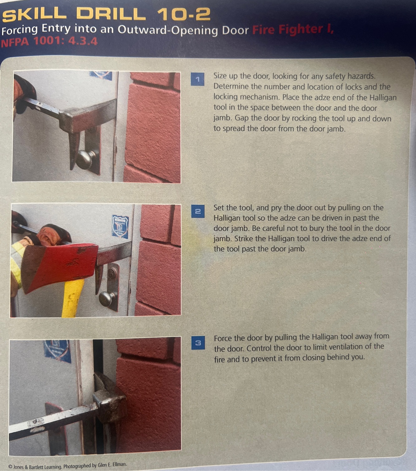 Forcing Entry into an outward opening door Skill Drill 10-2