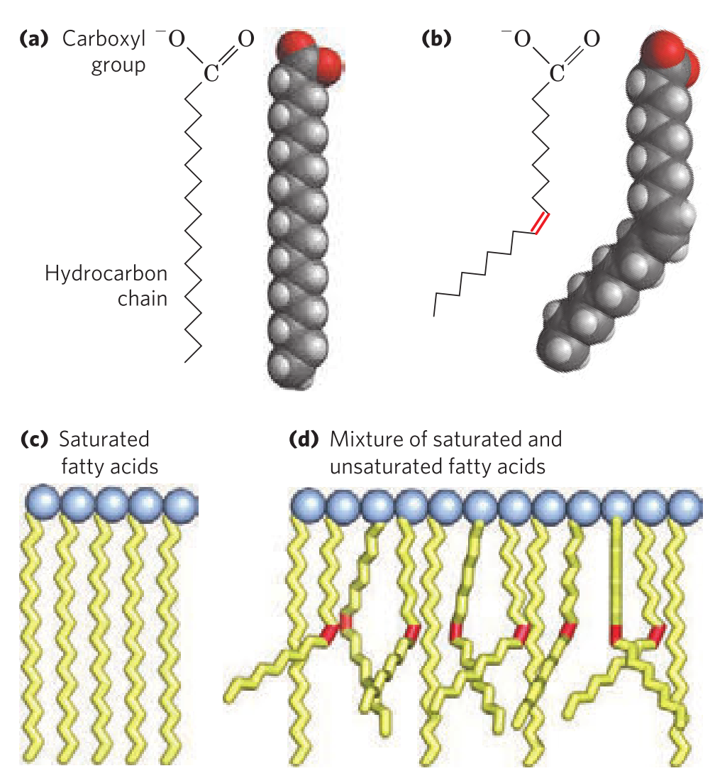 Differences in melting points are due to different degrees of packing of the fatty acid molecules. Explain.