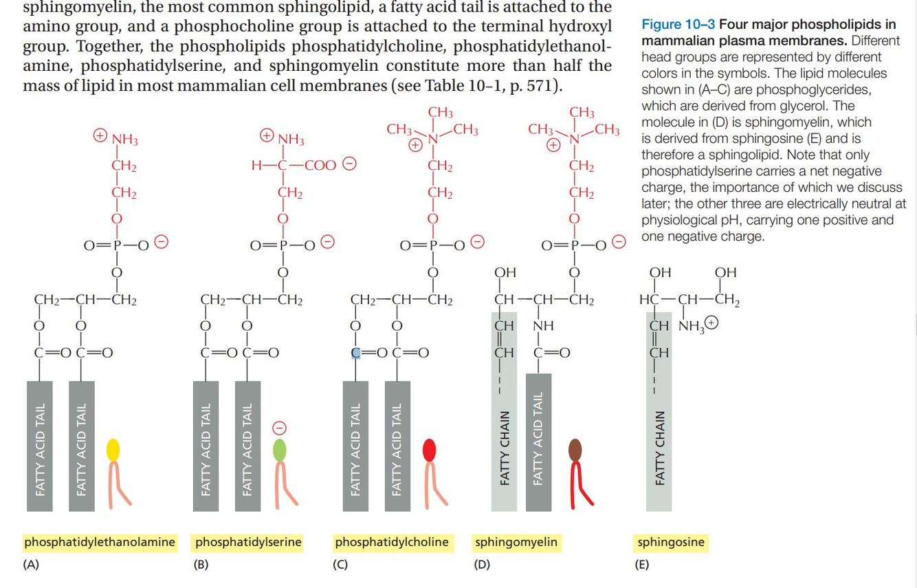 phosphatidylethanolamine, phosphatidylserine, phosphatidylcholine, sphingomyelin, sphingosine