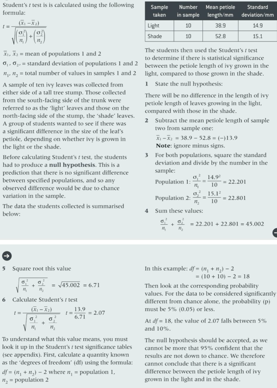 These tests can be used in a number of situations, for example when comparing variation within populations, or when comparing the effects of abiotic and biotic factors on organisms (Chapter 11, Biodiversity).