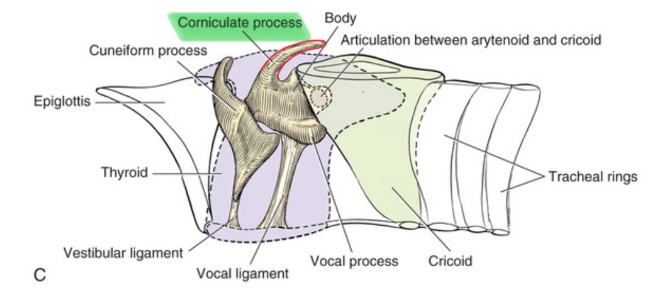 The corniculate process (an arytenoid cartilage) forms the dorsal margin of the laryngeal inlet
