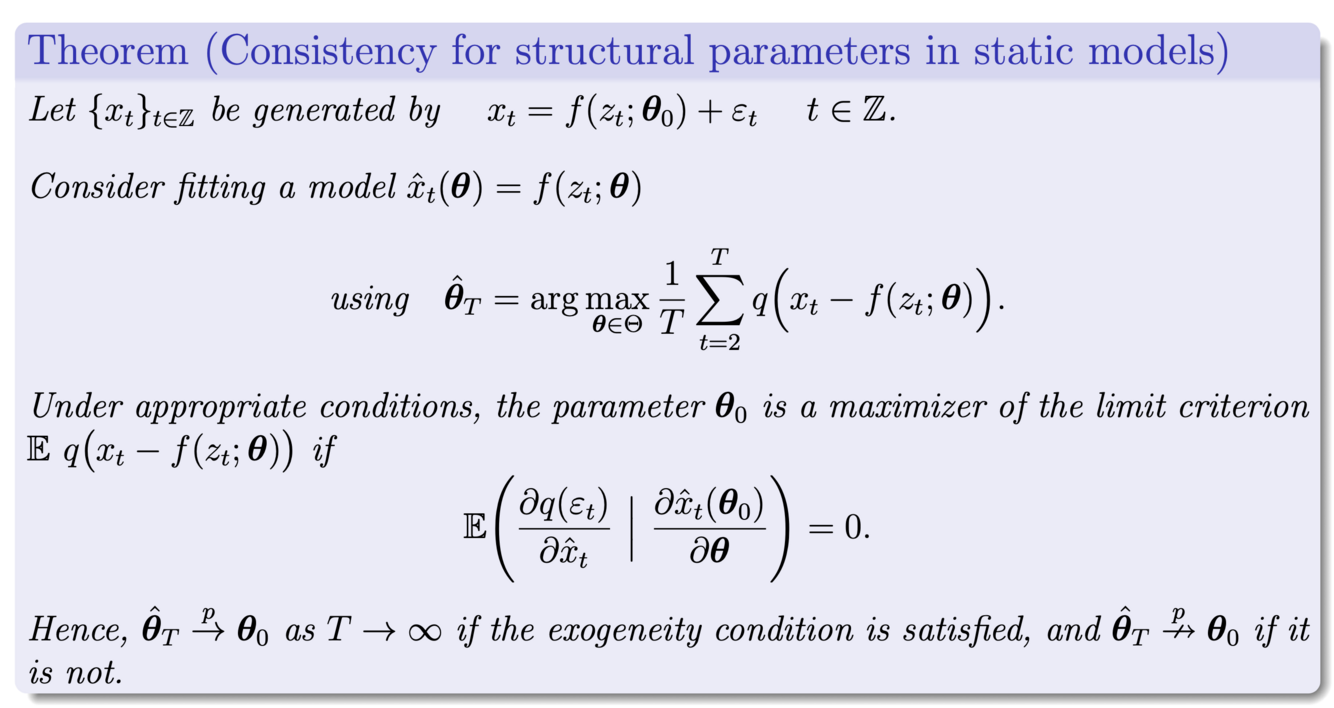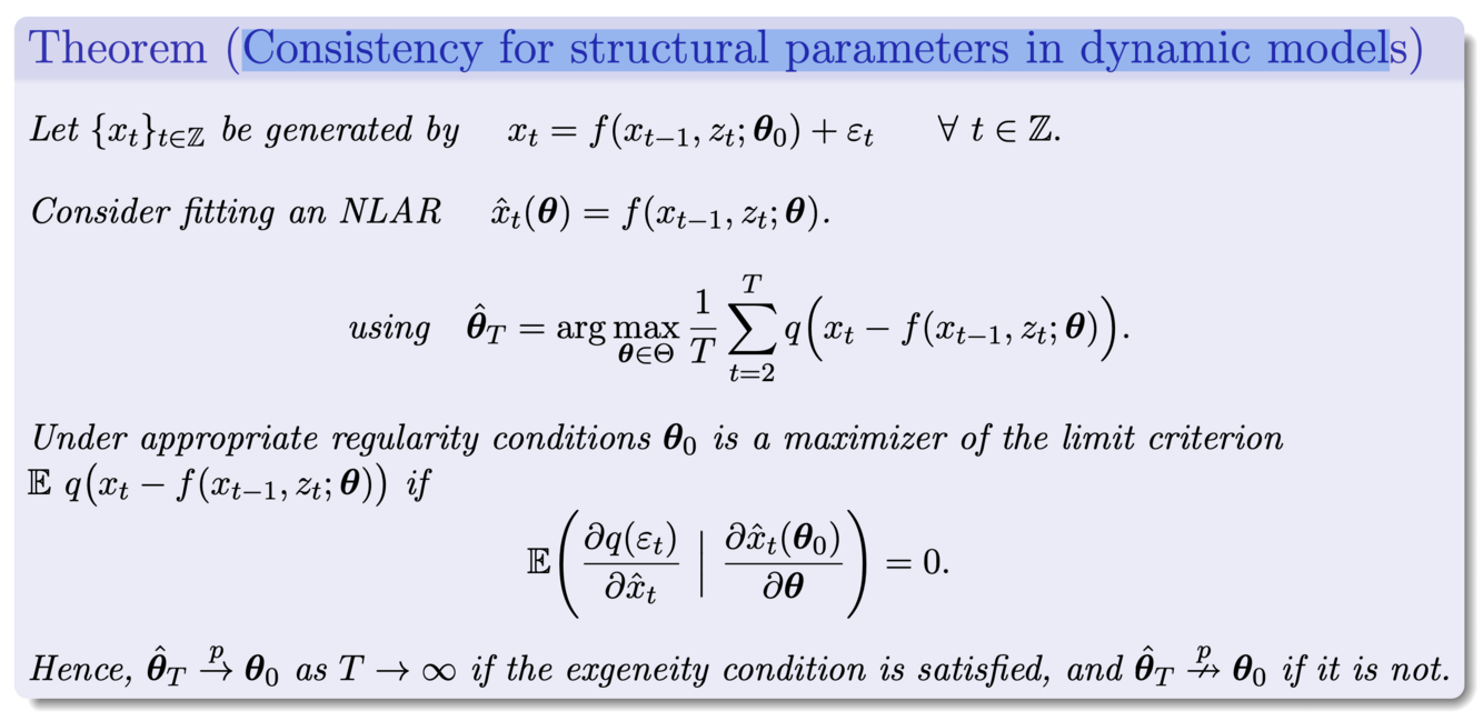 What is the Consistency for structural parameters in dynamic model Theorem?
