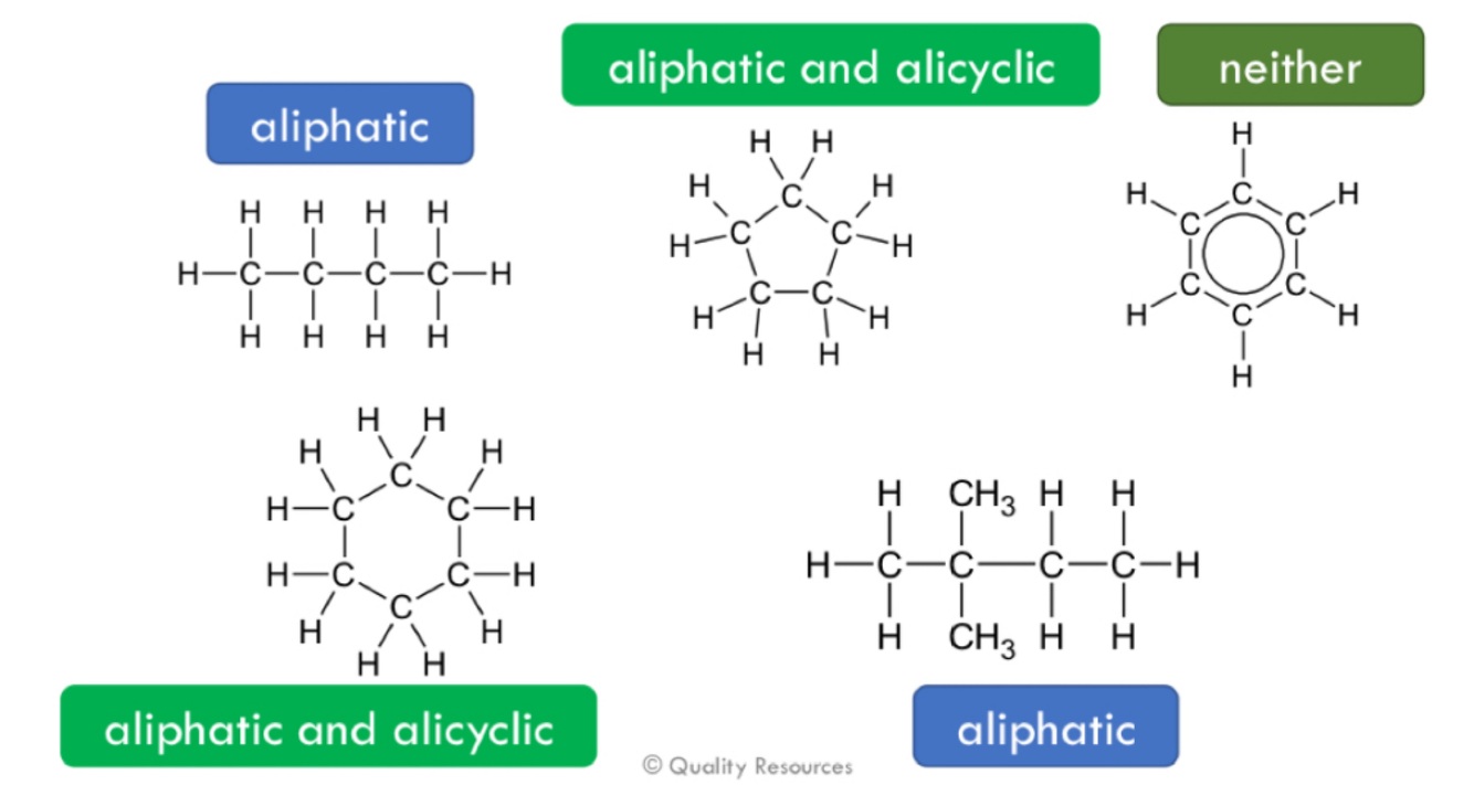 Aliphatic hydrocarbons - carbon atoms joined together in unbranched(straight) or branched chains