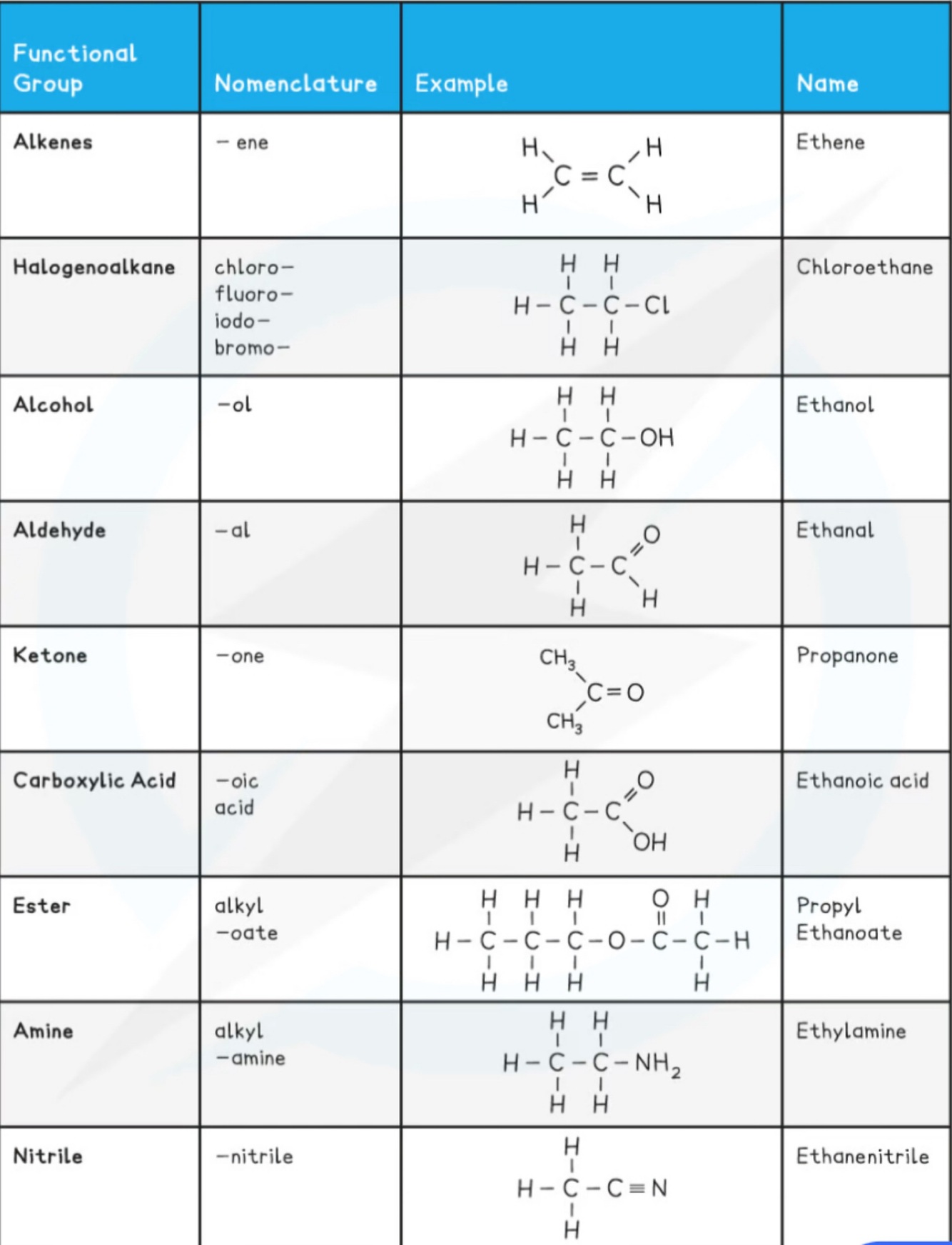 What are all the functional groups and their Nomenclature ?