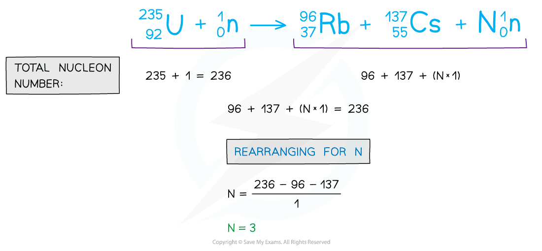 Balancing the number of nucleons shows that 3 neutrons must be released in the reaction