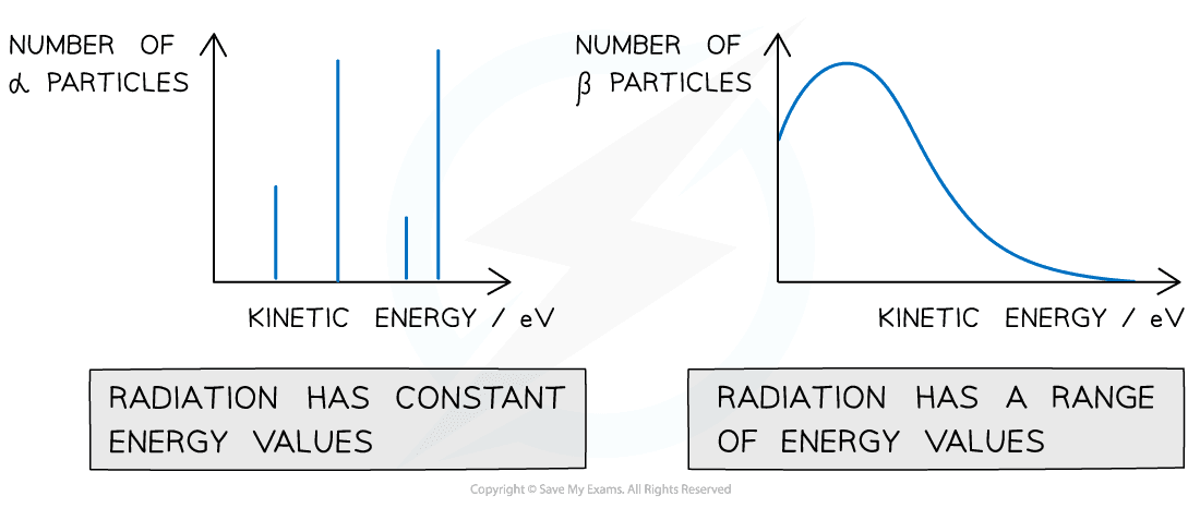 Alpha particles have discrete energy levels whilst beta particles have a continuous range of energies