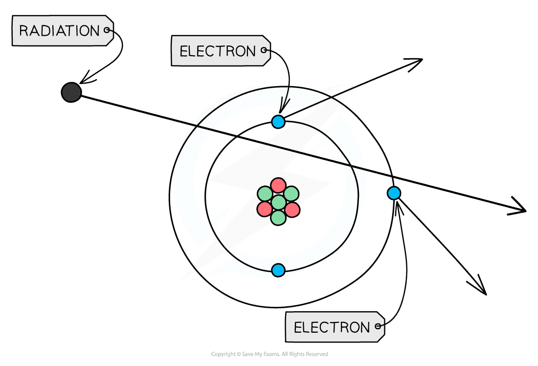 When radiation passes close to atoms, it can knock out electrons, ionising the atom