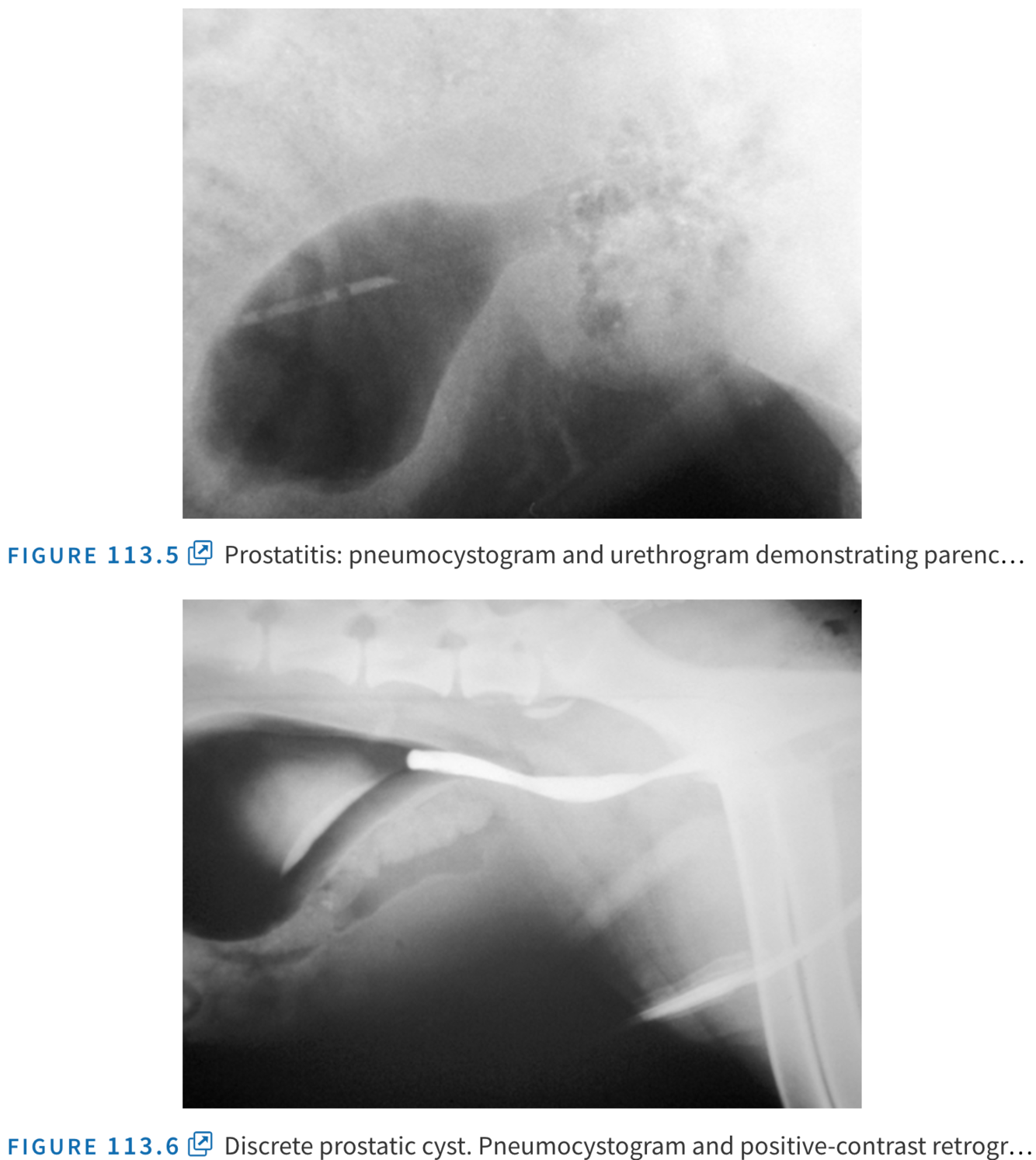 What radiographic chanhes might be seen with prostatic disease and what do they indicate