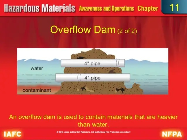Containment tecchnique that’s used when liquid is flowing in a natural channel or depression and its progress can be stopped by blocking the channel.