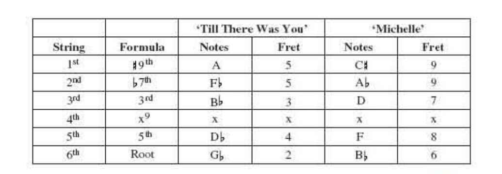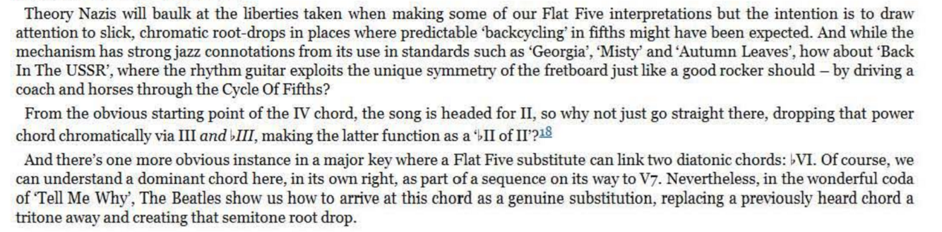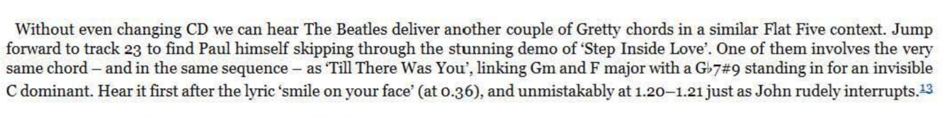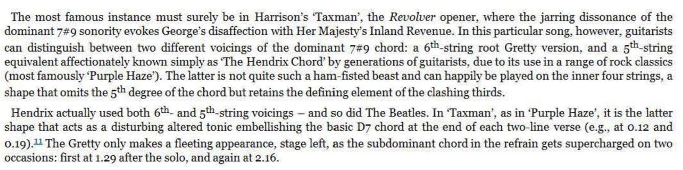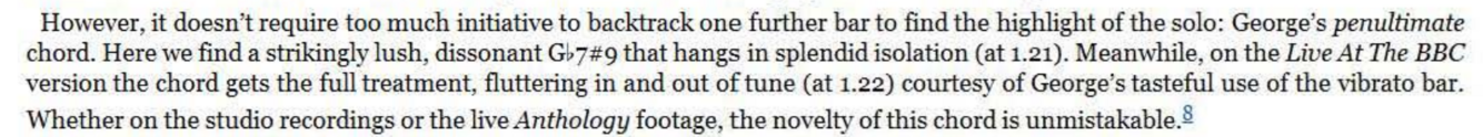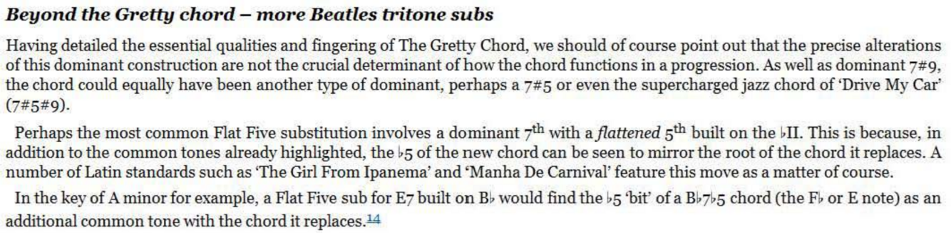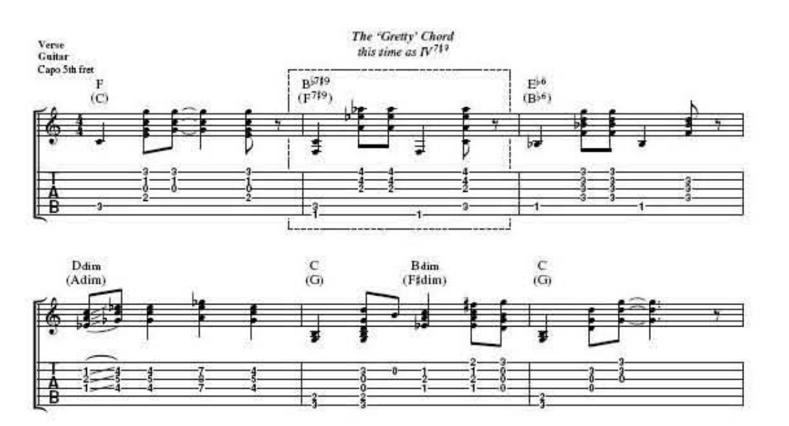 Appreciation of the chord is not aided by the rhythm guitar being so low in the mix, making the offending D natural easy to miss. But it can nevertheless be heard on close inspection, especially in the last verse after ‘ma belle’ and also in the dosing solo in the same progression. Once again don’t be put off by the resounding clash of false relations, with the Db now prominent as a target note in the guitar solo - that’s the whole point of the chord