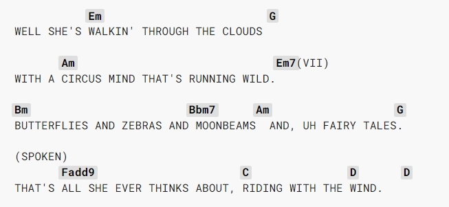 The differences and similarities between verse and the bridge uses of Bb should now be apparent. In the former there is no