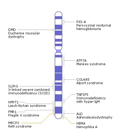 If X- linked, on X.