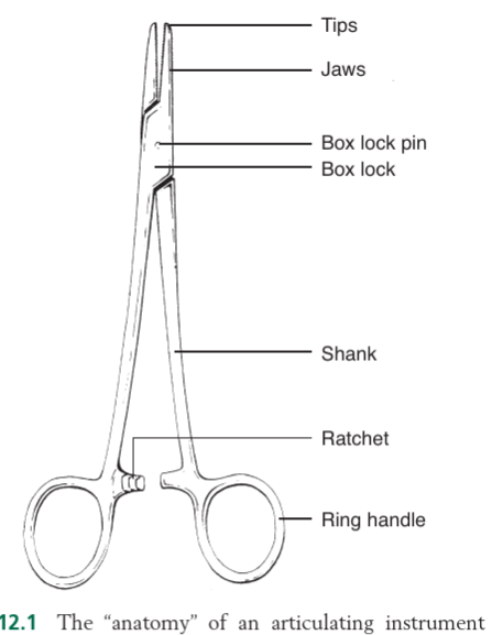 What are the 7 parts of the “anatomy” of a surgical instrument?