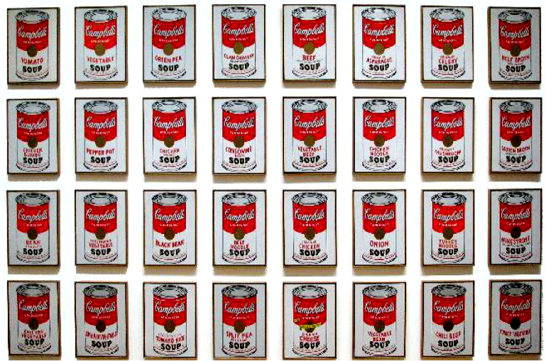 POP ART (U.S.) ANDY WARHOL. LEFT: CAMPBELL’S SOUP CANS, 1962; RIGHT: GREEN COCA-COLA BOTTLES, 1962