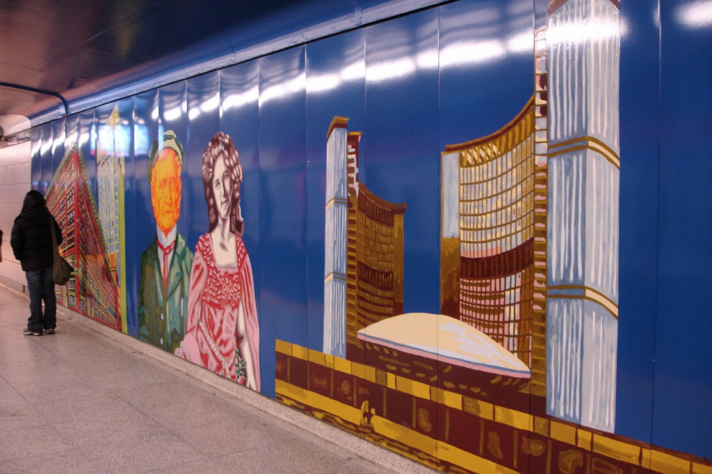 JOHN BOYLE, OUR NELL, 1980, BAKED PORCELAIN ON STEEL,QUEEN STREET SUBWAY STATION, T.T.C.