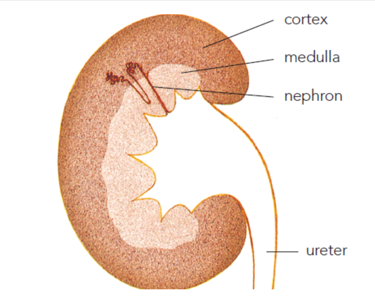 … to produce urine (a solution of waste products including urea, produced by the liver)