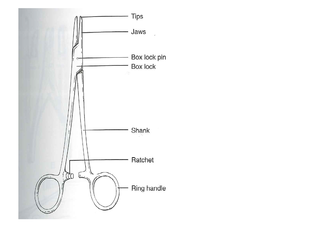 Right-angle forceps – lacking a ratchet lock and are used most often to dissect tissue especially when isolating vessels ex: patent ductus arteriosus