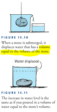 How much water is displaced when a stone is submerged in it?