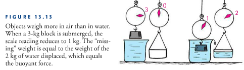 **Archimedes’ Principle- An immersed object is buoyed up by a force equal to the weight of the fluid it displaces. ****If an immersed object displaces 1kg of fluid, the buoyant force acting on it equals to the weight of 1kg.