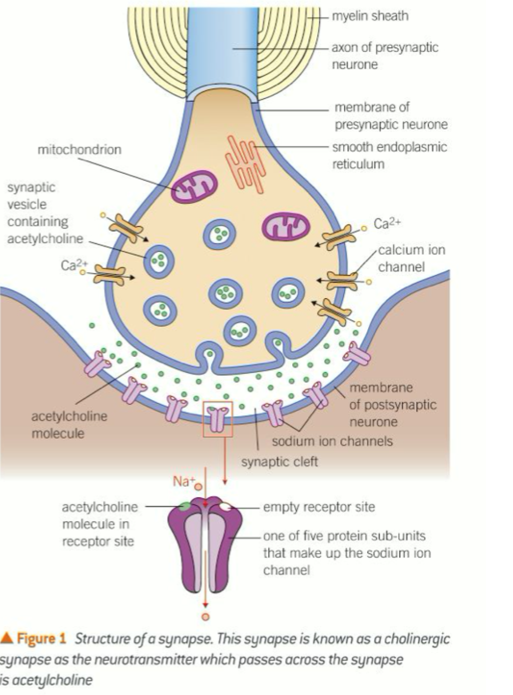 Depolarisation of the presynaptic membrane causes calcium ion channels to open