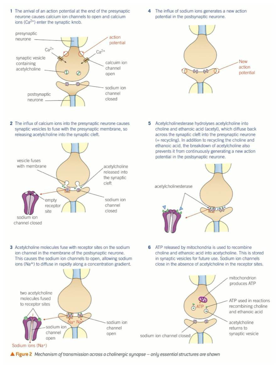 Once an action potential has been triggered, acetylcholine is hydrolysed by a specific enzyme - acetylcholinesterase.