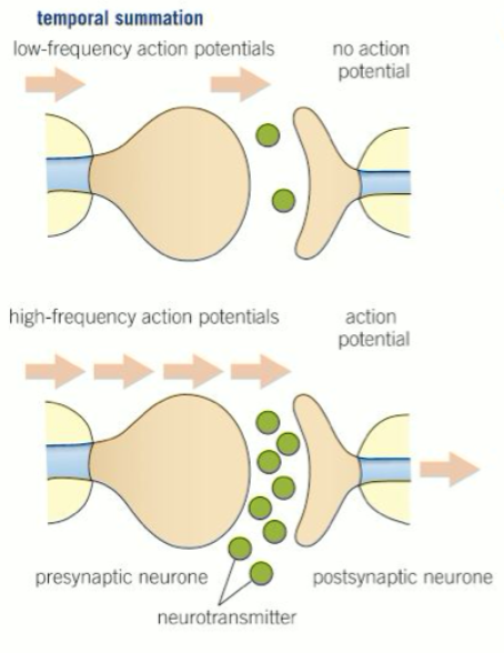 this occurs when a single presynaptic neurone releases neurotransmitter as a result of an action potential several times over a short period. - This builds up in the synapse until the quantity is sufficient to trigger an action potential