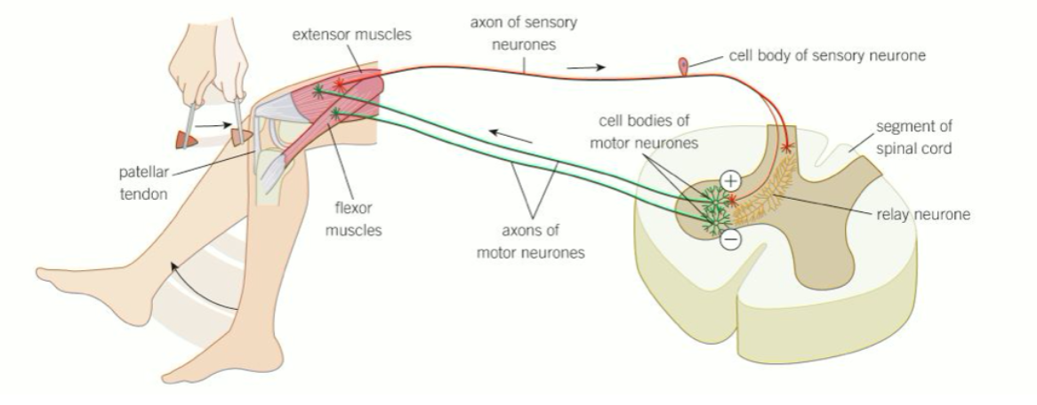 At the same time, a relay neurone inhibits the motor neurone of the flexor muscle, causing it to relax.