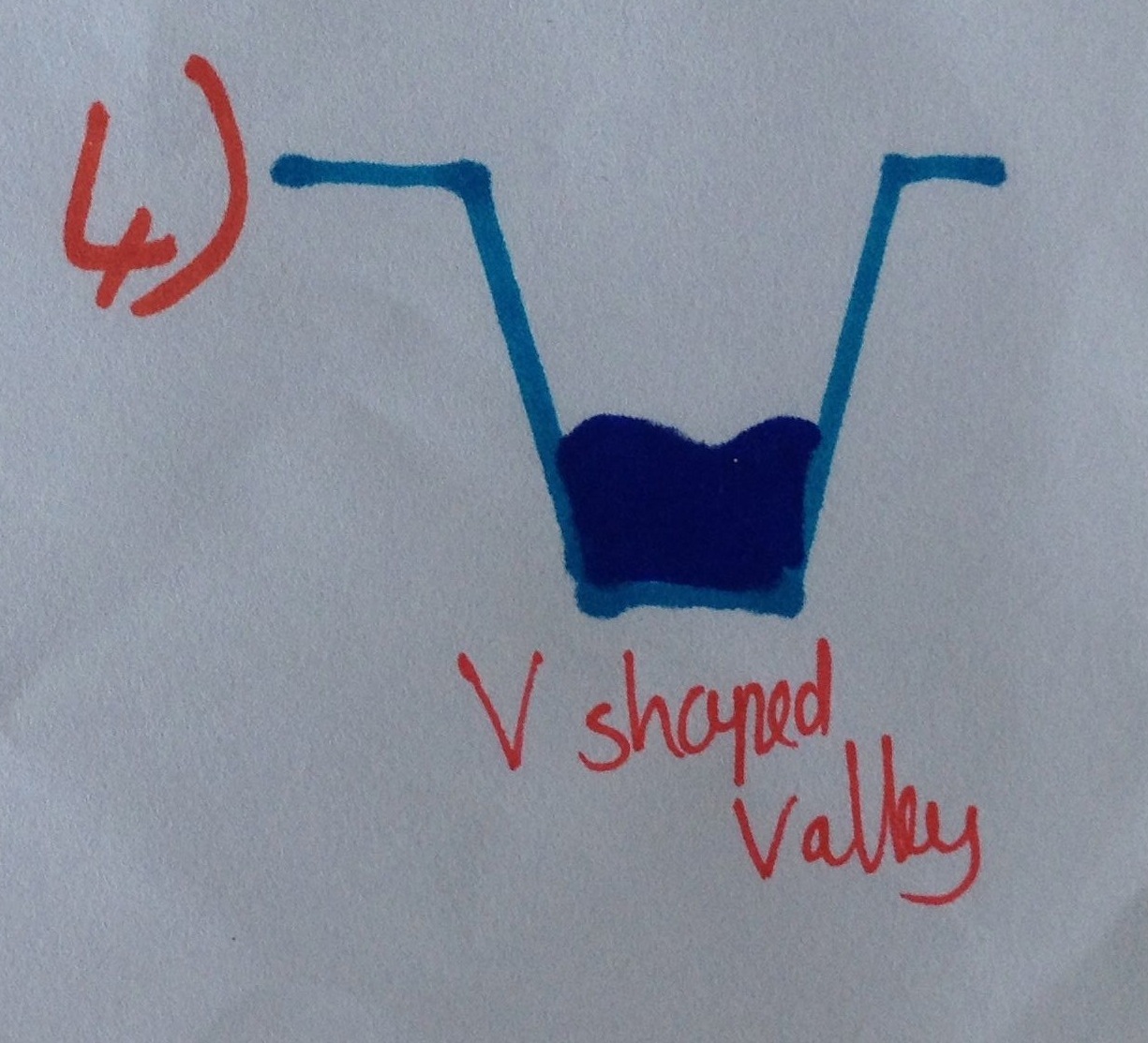 high, steep sides and a wide flat bottom formed by a glacier flowing through the original valley.