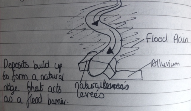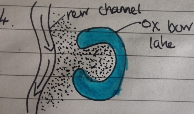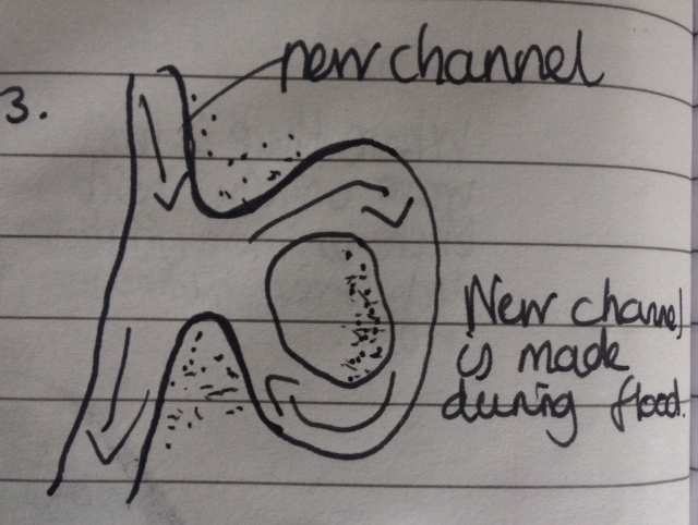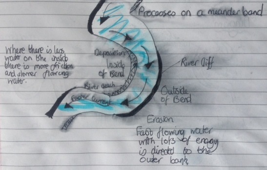 The course of the river is not as straight as the upper course so the river flows towards the outer bank.