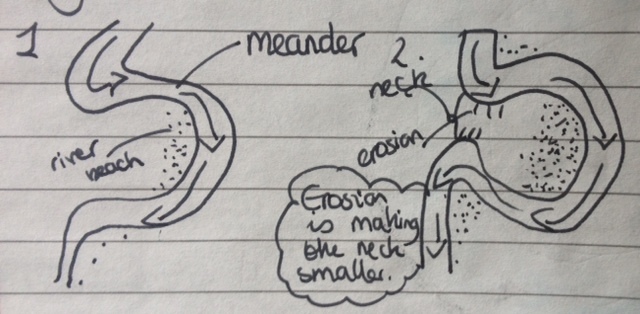 If a river flows over hard rock and then over a band of soft rock, the soft rock will be worn away leaving the hard rock. This can lead to the formation of a