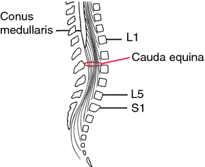 nerve rootlets that come off the base of the spinal cord (conus medullaris)