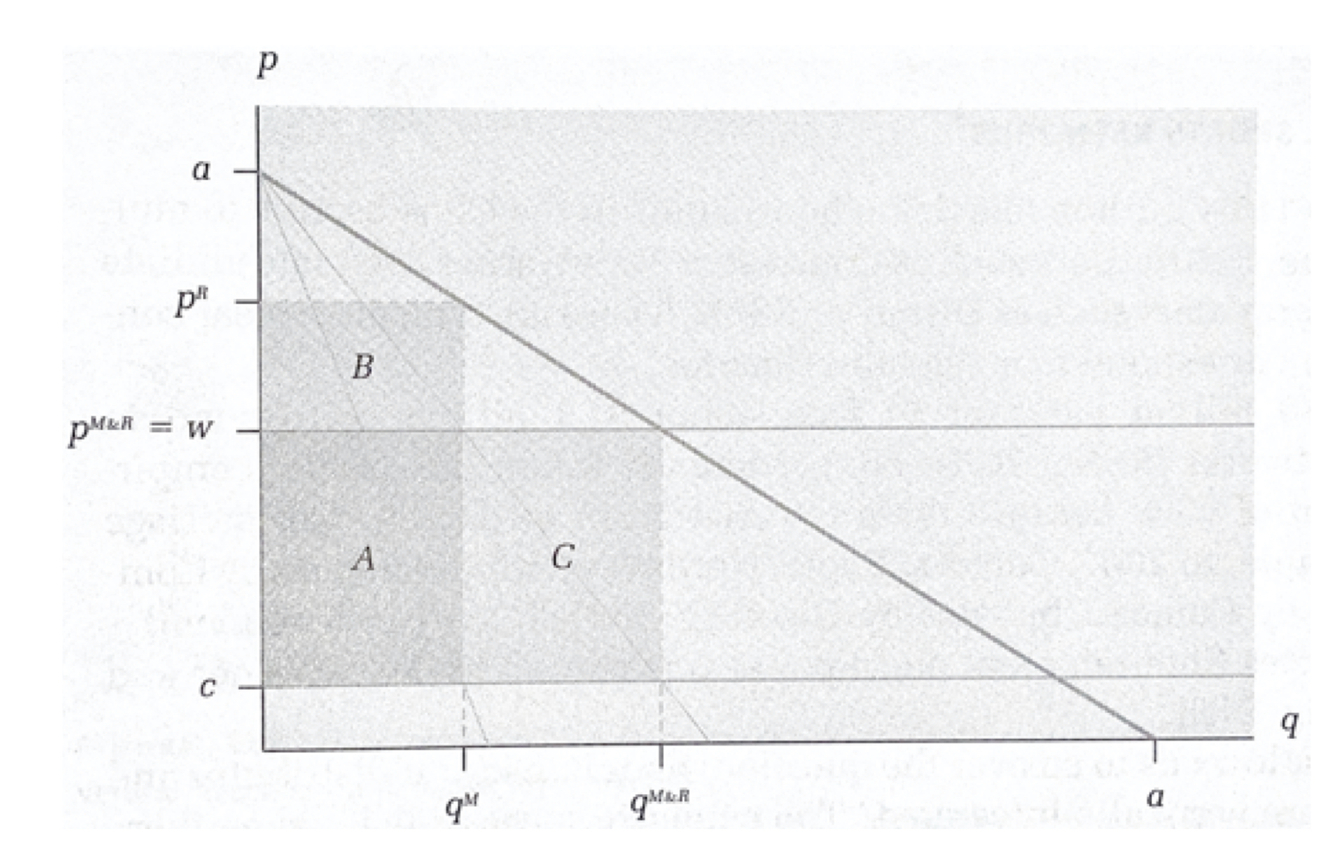 allowing for fixed fees, the upstream profit maximisation problem is essentially equivalent to maximising joint profits of the upstream and the downstream firms, and then finding the maximum fee that the downstream firm is willing to pay.