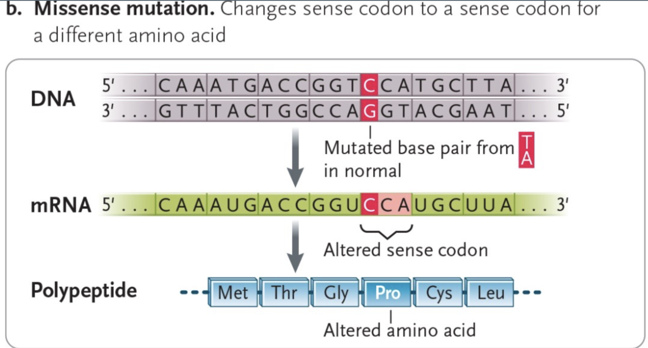 changes sense codon to a sense codon for a different amino acid