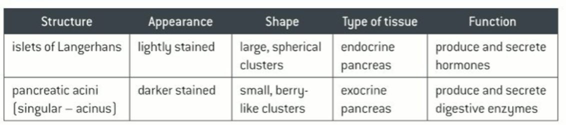 Within the exocrine tissue there are small regions of endocrine tissue called islets of Langerhans.