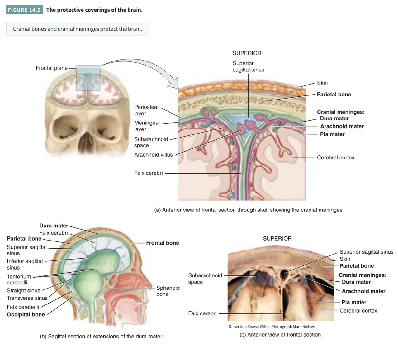 What are the three cranial meninges? What makes them different from the spinal meninges?