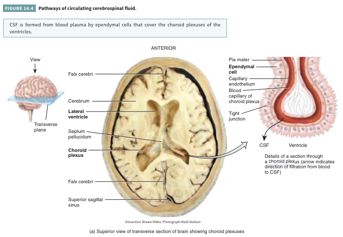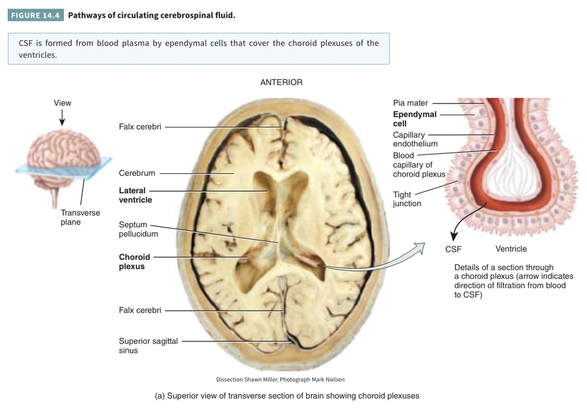 Networks of blood capillaries in the walls of the ventricles, where the majority of CSF is produced.