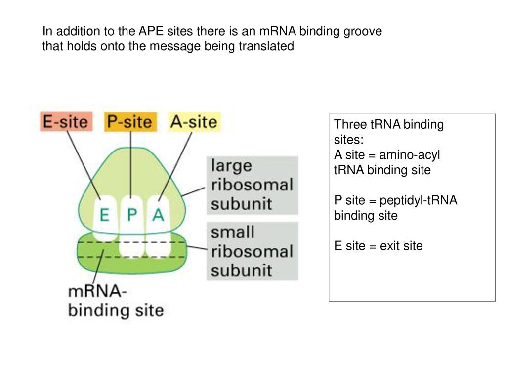 A= holds tRNA carrying the next amino acid to be added to the chain