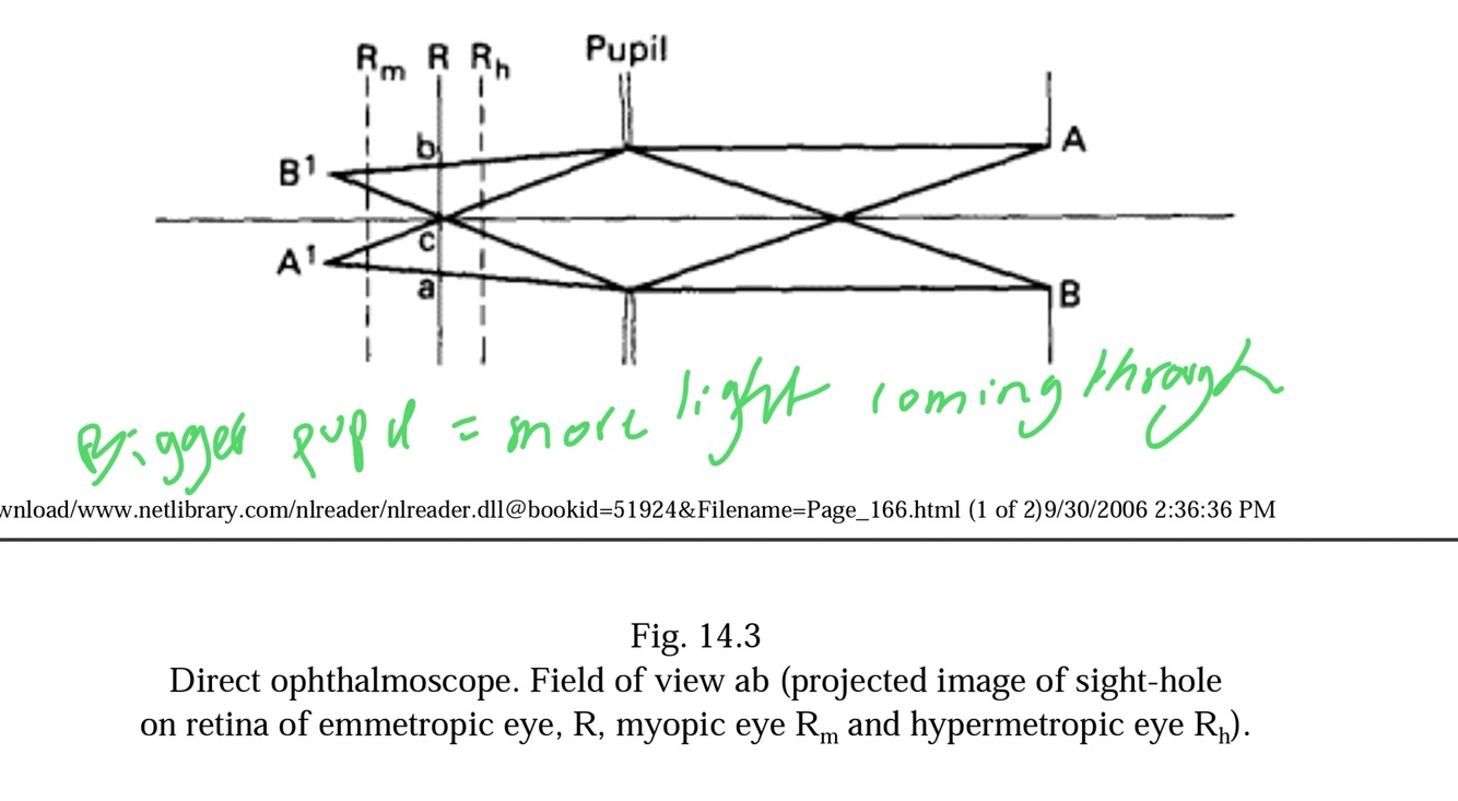 In indirect ophthalmoscopy, how does the refractive state of the patients eye effect the field of view. Picture below is of direct ophthalmoscope for comparison