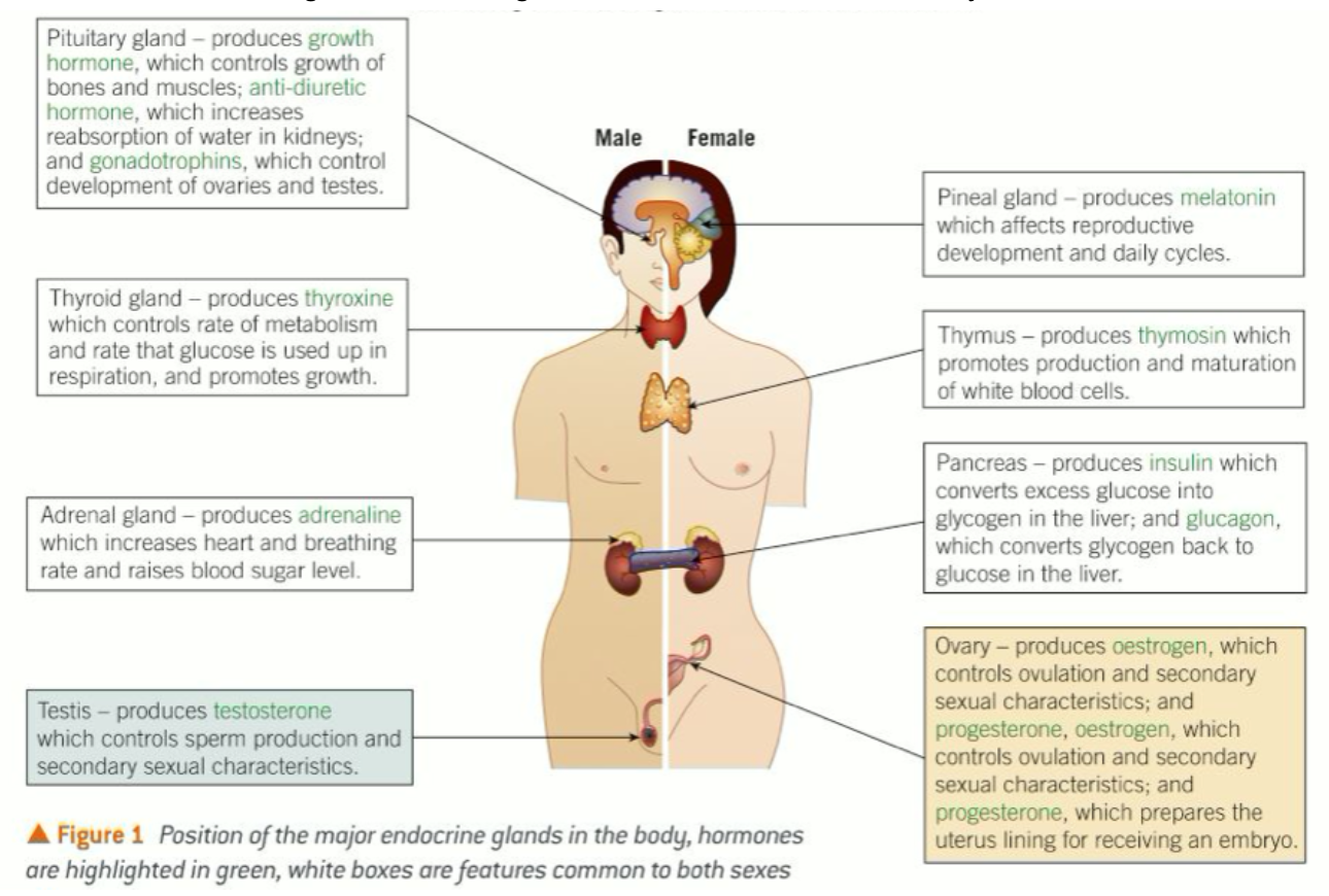 The endocrine system uses hormones to send information about changes in the environment around the body to bring about a designated response.