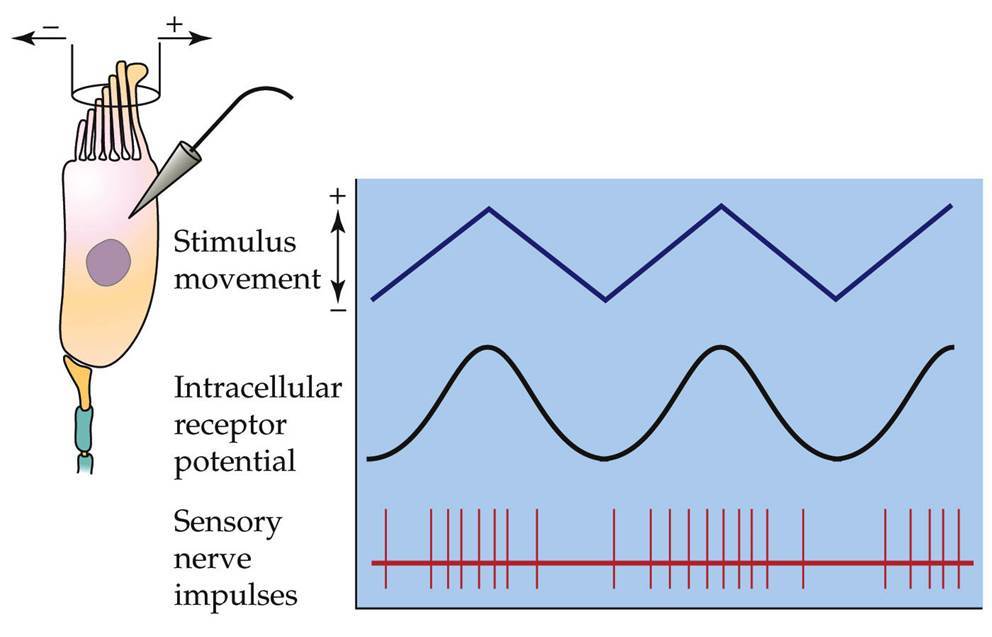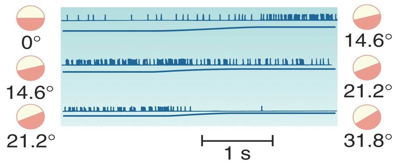 These AP recordings from a single receptor in the statocyst epithelium show how firing rate changes when a specially-trained lobster performs a somersault