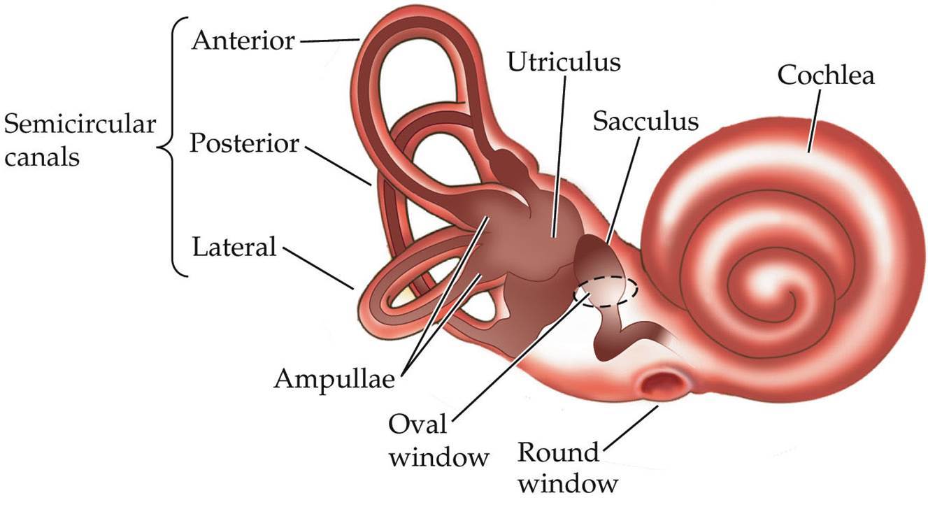 2 endolymph-filled inner ear chambers called the sacculus and the utriculus as well as the semicircular canals are the vertebrate organs of equilibrium
