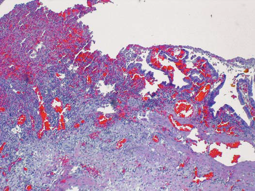 An incidental finding on gallbladder removal - exophytic growth into the lumen. Gallbladder wall thickened and leathery.